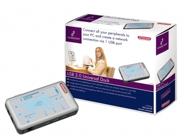 This USB 2.0 universal dock is a total solution for connecting additional peripherals to your PC or notebook such as a printer, a scanner, mouse, a keyboard, a monitor and various USB devices. You can also use the USB 2.0 universal dock to connect your PC to any 10/100 Mbps network.