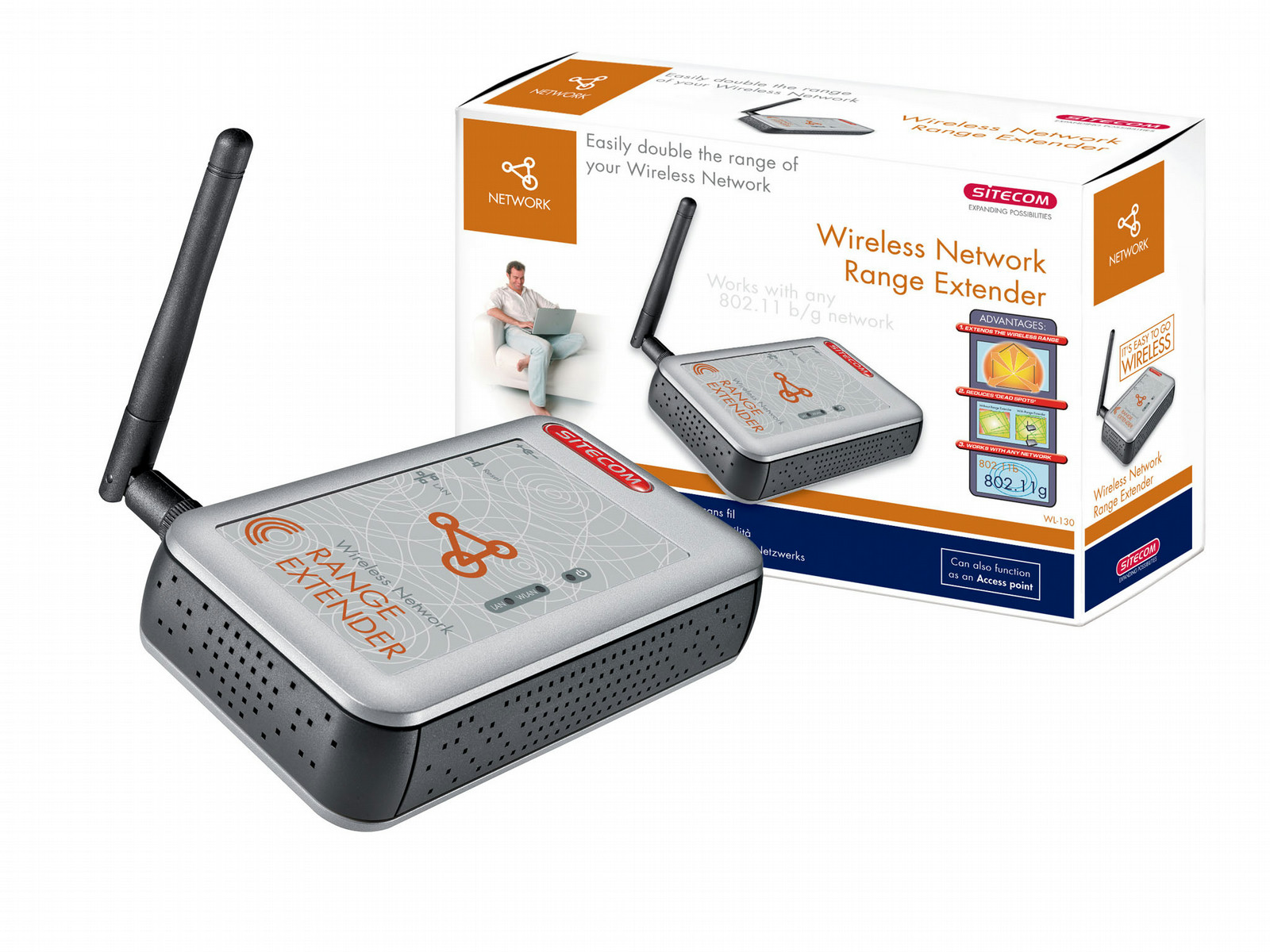 Extend the wireless range of your network by using the Wireless Network Range Extender. Once configured, you can easily place the extender within the wireless range of your network and enjoy the wireless freedom of your network in even more places. You can also use the Wireless Range Extender as an Access Point.
