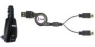 USB retractable cable + Combo charger (AC & DC charger with 2 USB plugs)