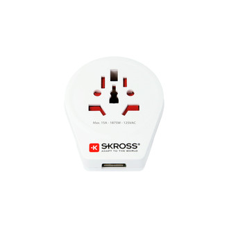 The Country Adapter World to USA USB is ideal when travelling to countries with the US plug standard. You can use it to connect all your 2-pole and 3-pole devices on your travels and charge your USB devices at the same time.