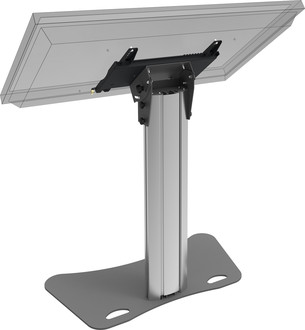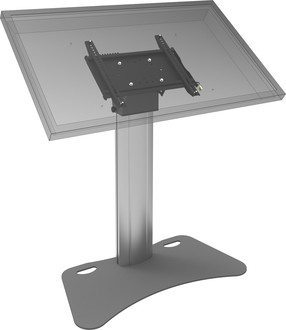 SmartMetals launches this platform stand in three models; for displays up to 50 inch (max. 65 kg) with a length of 350 mm. One for screens up to 50 inch (max. 65 kg) with a length of 950 mm and a larger stand for screens up to 65 inch (max. 90 kg) with a length of 950 mm. All three versions are available with a standard baseplate or wheeled baseplate. The stands have an angular adjustment between 35° and 55°. Based upon the screen size and type a customer chooses the stand and combines it with mount . 052.1000 or 052.2000 (mounting system 170x140 mm)