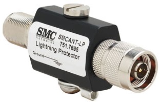 The SMC Lightning Protector SMCANT-LP is a gas discharge tube suppressor featuring wide-band operation up to 2.5 GHz. This unit features an N-Female to N-Male Bulkhead connector making it easy to integrate into existing wireless systems without even adding an additional cable. Due to its low insertion loss and superior RF performance, this unit is ideal for IEEE 802.11b/g Wireless LAN applications and can be used with amplified systems to maximize your systems performance at greater distance.