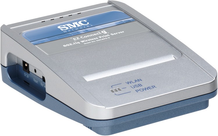 SMC’s EZ Connect™ Wireless Print Server offers a versatile way to connect to your printer via its USB port. With a built-in Ethernet port and 54Mbps 802.11g wireless client on board, SMC’s Wireless Print Servers allow access to a printer through a regular wired Ethernet LAN connection or by 802.11g Wireless LAN. As a wireless enabled print server, it supports both Ad-Hoc mode (point-to-point wireless networks) and Infrastructure mode (using your existing Wireless access point). The SMCWPS-G Wireless Print Server is the ideal network printing solution for all consumers, home offices, classrooms or other businesses that require printer sharing. Configuration is a breeze with easy to use web-based interface and a variety of remote management utilities. Compared to attaching a printer to your PC, this print server gives you more flexibility in placing the printer and better performance.