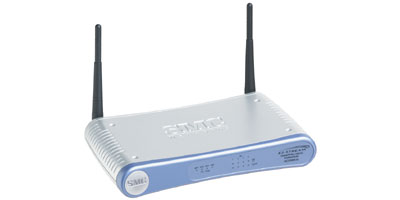 The SMC2304WBR-AG is a platform-independent, multi-functional router that combines a 2.4 GHz/5 GHz 802.11a, b, and g wireless Access Point, 4-port 10/100 Mbps dual-speed switch with automatic MDI-MDIX ports, Stateful Packet Inspection (SPI) firewall security, network management, Virtual Private Network (VPN) pass-through support, and parental controls. The SMC2304WBR-AG supports transfer rates up to 108 Mbps in 802.11a and g modes — 10 times the data rate and throughput of standard 11 Mbps WLAN products. Its high-bandwidth and high-speed capabilities make the SMC2304WBR-AG perfect for today’s demanding home networking: gaming, transmitting music and movies via networked set-top boxes, PCs, and SMC’s own EZ-Stream Universal Wireless Multimedia Receiver (SMCWMR-AG) to TVs and stereos. The SMC2304WBR-AG sets-up easily with its EZ 3-Click Installation Wizard. Additional features include an integrated SPI firewall, 802.1x for authorization and authentication, Wi-Fi Protected Access, disabled SSID broadcast, MAC address filtering, and 152-bit WEP encryption.