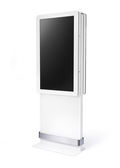 This enclosure for indoor Digital Signage is as secure as it is attractive and allows you to meet visitors from two directionsat the same time. The one or two LED backlit LCD displays are safely housed behind unbreakable Hammerglass (standardfitting). Other protection from external damage includes the drill-proof security locks and the robust black or white cover. A kick-rail and structured coating that ensure that any stains and marks are hardly visible are also standard equipment. A comprehensive solution for commercial premises, public spaces and other locations in which the flow of visitors places high demands on the media equipment. Discreetly blends into different surroundings. Manufactured to order.