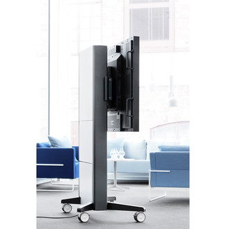 The accurate factory assembly means that installation is easy and quick, while the hidden cable chain inside the product ensures that the cables run freely with no risk of fastening. The design of the SMS Presence is, furthermore, protected. Maximum display weight: 120 kg. Finish:aluminium/anthracite grey.