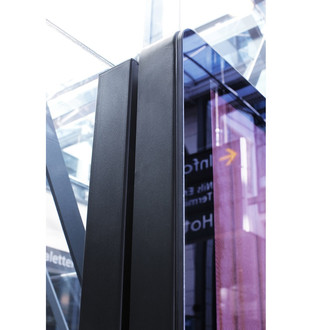 This enclosure for indoor Digital Signage is as secure as it is attractive and allows you to meet visitors from two directionsat the same time. The one or two LED backlit LCD displays are safely housed behind unbreakable Hammerglass (standardfitting). Other protection from external damage includes the drill-proof security locks and the robust black or white cover. A kick-rail and structured coating that ensure that any stains and marks are hardly visible are also standard equipment. A comprehensive solution for commercial premises, public spaces and other locations in which the flow of visitors places high demands on the media equipment. Discreetly blends into different surroundings. Manufactured to order.