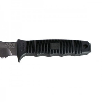 The SEALs are one of the most specialized elite military groups in the world today. SEALs must undergo one of the most rigorous training programs devised to produce the consummate warrior. Only a select few endure and earn the right to wear the SEAL Trident on their uniform. The SEAL Team knife, formerly known as the SEAL Knife 2000, evaluation program included: tip breaking stress, blade breaking limit, sharpness, edge retention, handle twist off force, two week salt water immersion tests, gasoline and acetylene torch resistance, chopping, hammering, prying, penetration tests, cutting six different types of rope and line, plus an intense hands-on competition in the field.