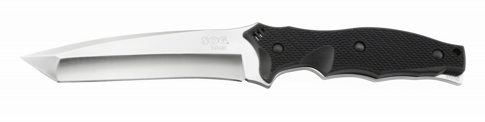 Radical blade grinds have been one of the signatures of SOG’s knives, but to produce these complex blade shapes and grinds requires the finest attention to detail. Perhaps this helps to explain why the Vulcan fixed blade is so special. Each side of the knife has three separate grinds that come together to make a strong powerful knife. The reverse curve in the VG-10 blade is further evidence of this masterful craftsmanship. The full tang blade is clad with glass-reinforced GRN scales that are textured in an intricate wave pattern. The premiere tactical knife for the modern militia.