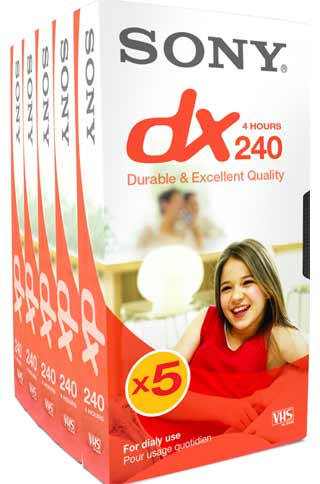 Sony 5-pack VHS DX Tape 5E240DX VHS blank video tape