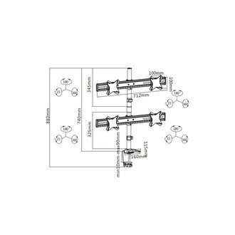 Sopar 23270. Maximum weight capacity: 32 kg, Minimum screen size compatibility: 33 cm (13"), Maximum screen size compatibility: 58.4 cm (23"). Swivel angle: 180°, Tilt angle: -15 - 15°, Rotation: 360°. Colour of product: Black, Silver, Material: Aluminium. Height: 740 mm, Package width: 75 cm, Package depth: 40 cm