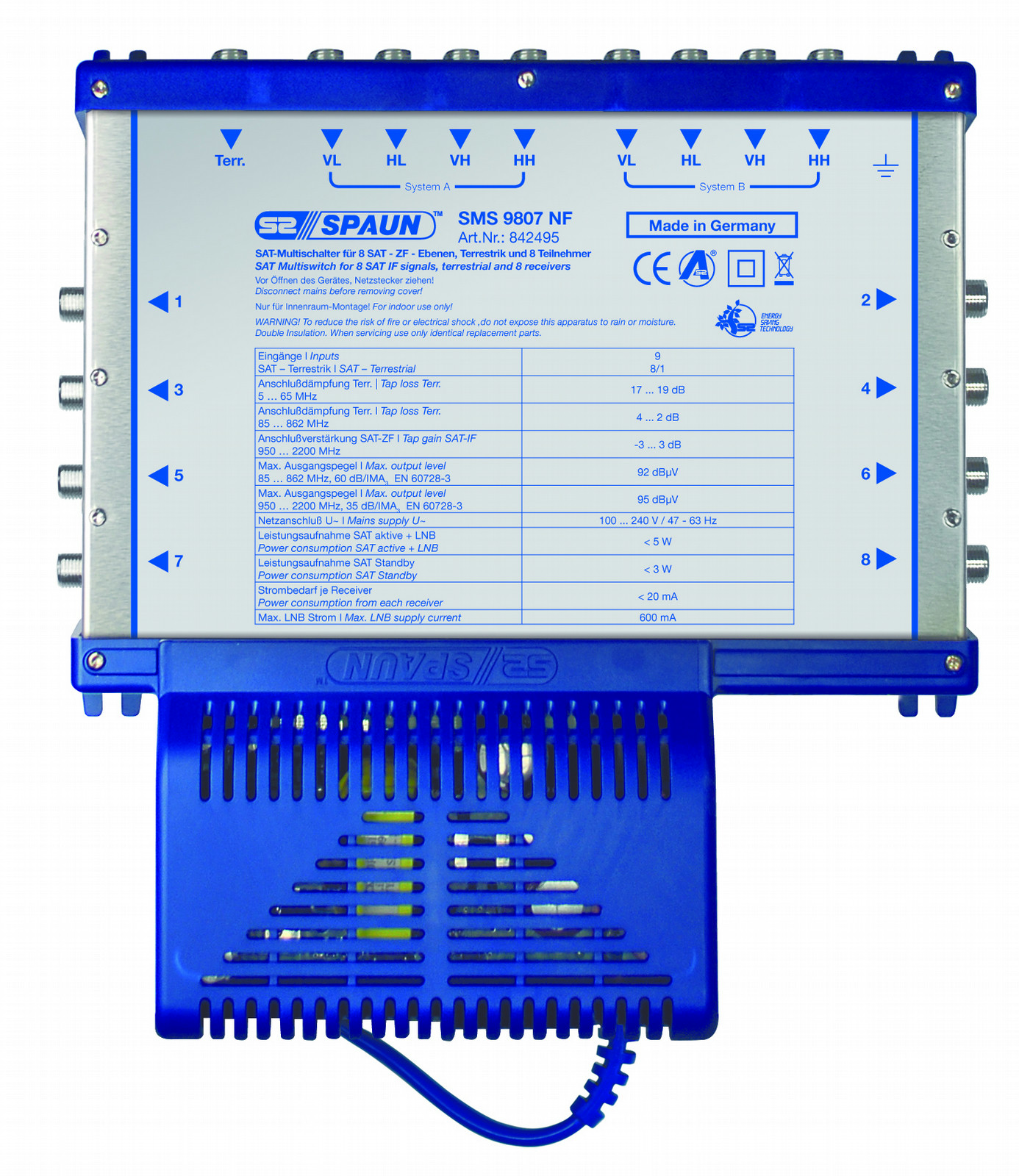 85 - 862MHz, 8 Sat In, 1 Terrestrial In, 8 Out, 5W