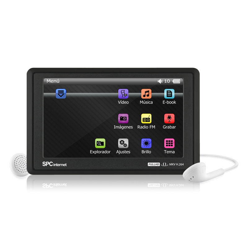SPC 5054N. Type: MP4. Colour of product: Black, Volume control: Digital. Player media type: Flash-media, Total storage capacity: 4 GB, Compatible memory cards: microSDHC. Display: LCD, Display diagonal: 12.7 cm (5"), Display resolution: 800 x 480 pixels. Audio formats supported: AAC, AC3, APE, FLAC, MP1, MP2, MP3, OGG, WMA, Video formats supported: 3GP, AVI, DIVX, H.264, MKV, MP4, MPEG1, MPEG2, MPEG4, RM, RMVB, XVID, Image formats supported: BMP, GIF, JPG, PNG