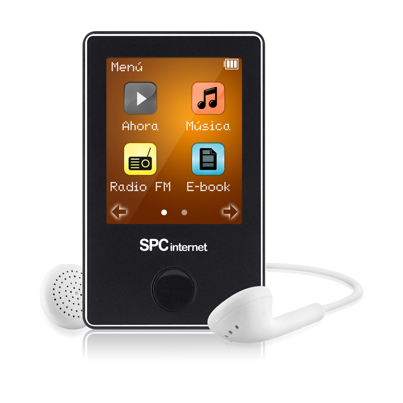 SPC 8274N. Colour of product: Black, Volume control: Digital. Player media type: Flash-media, Total storage capacity: 4 GB. Display: TFT, Display diagonal: 4.57 cm (1.8"), Display resolution: 160 x 128 pixels. Audio formats supported: APE, FLAC, MP1, MP2, MP3, WAV, WMA, Document formats supported: TXT. Headphone connectivity: 3.5 mm