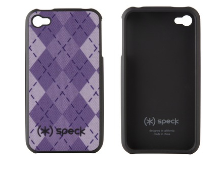 Fitted f/ iPhone 4, Lavender/Purple Argyle It feels really good, this case does. And it looks good, too. Sleek, stylish, a hint of sophistication and smarts; this hard-shell case with matte soft-touch coating becomes even more impressive if you match the fabric-backed panel to your outfit, scarf, or tie.