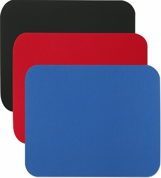 Mouse pad dispenser containing 20 soft foam unicoloured mouse pads in black, red and blue. - Soft foam mouse pads in 3 colours - wrapped individually - black, red, blue - 23 x 19cm surface - 3mm thick