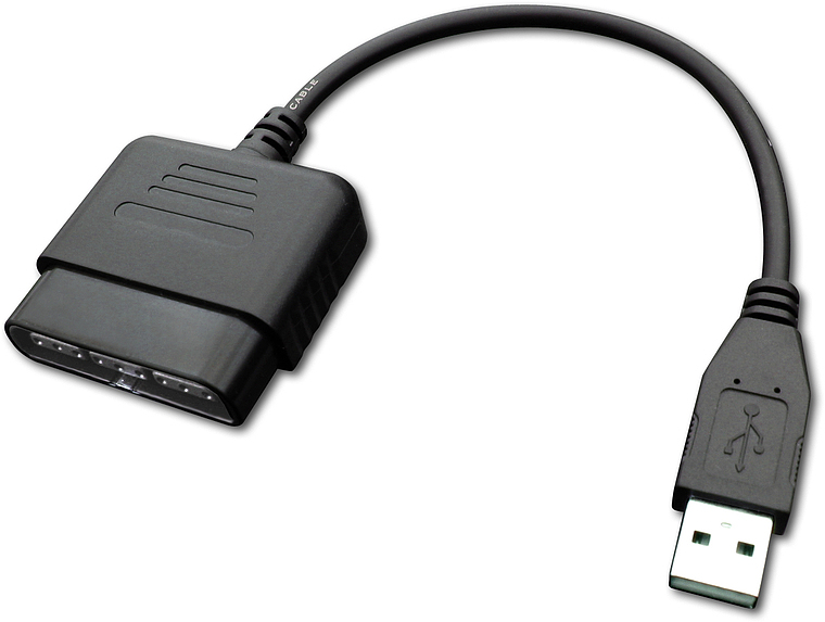 - Adapter for connecting a Playstation®2 gamepad to a PC’s USB port.