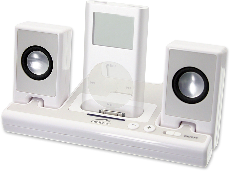 -External speakers with integrated docking station
