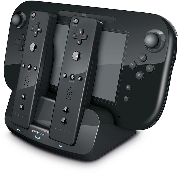 SPEEDLINK TRIDOCK 3-in-1 Charger, for Wii U. Charger type: Indoor, Charger compatibility: Gaming controls, Power source type: AC. Colour of product: Black