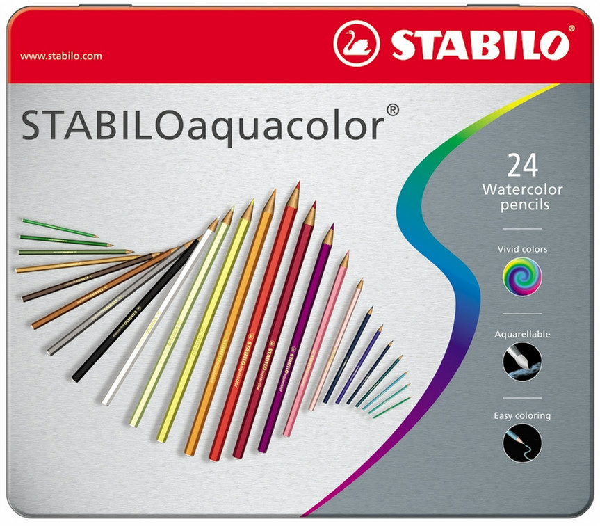 A metal tin of 24 Aquacolor artist pencils in assorted colours