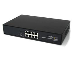 The IES8100POEGB 8-port 10/100 Mbps Power over Ethernet (PoE) Switch enables you to supply both power and data to up to 8 PoE-capable devices.