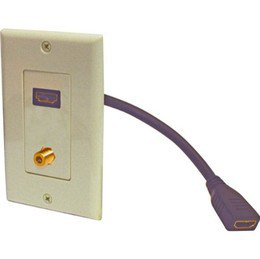 Wall faceplate, 21.59 cm (8.5 ") HDMI pigtail cable + F Jack, ivory