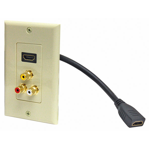 21.59 cm (8.5 ") HDMI f/f pigtail cable + 3-RCA Jack (Y/R/W) Wall Plate, ivory - In-wall wiring solution between audio/video components with a neat, clean exterior connection point