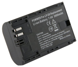STK's LP-E6 For Canon EOS 7D, 60D, 5D Mark II, High Capacity 2600mAH Canon LP-E6 Battery Pack. STK's Canon LP-E6 Battery (POWWER Trademark) was designed to meet or exceed the OEM charging capacity. Our company has strived very hard in order to supply you with the highest quality Canon LP-E6 replacement batteries on the market. 1 Year Total Warrantee: We will exchange this as well as any other product which you decide to buy from us for 1 year from the day your purchase is processed if it fails under regular wear or is defective. We always sell brand-new great quality products and we are willing to back them up. SterlingTek advertising images and text are protected by trademarks and copyrights