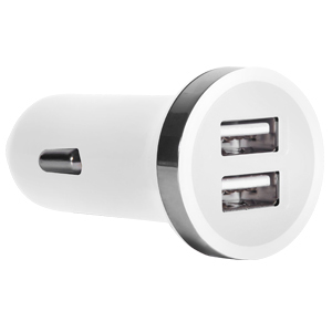 2.4A White Dual USB In-Car Charger