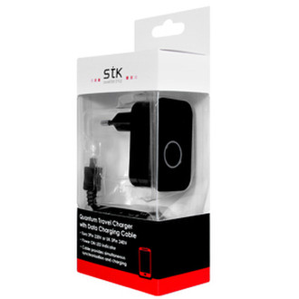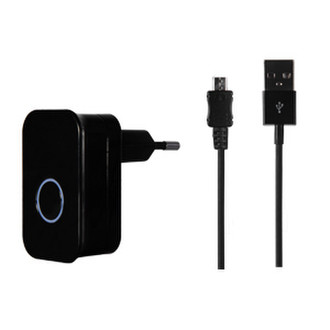 Quantum Travel Charger with Euro 2Pin Plug (220V) and Micro USB Data Cable, Black
