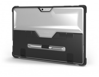 For first-in-class protection, the Dux for Surface Pro 4 is clearly the case of choice. Tested to meet or exceed U.S. Department of Defense Standard 810F/G durability tests, the Dux works seamlessly with your new Surface its Type Cover and pen. Tough, reinforced TPU and polycarbonate construction protects from inadvertent drops. Slim and lightweight design yet super protective. New Infinity Hinge™ stand allows for almost limitless viewing and typing angles. Rubberized feet prevent the device from sliding on a smooth surface. Easy installation or removal of the device without the need for any tools. With built in pen storage and clear back panel for asset tagging or a custom look, your Surface Pro 4 never had it so good!