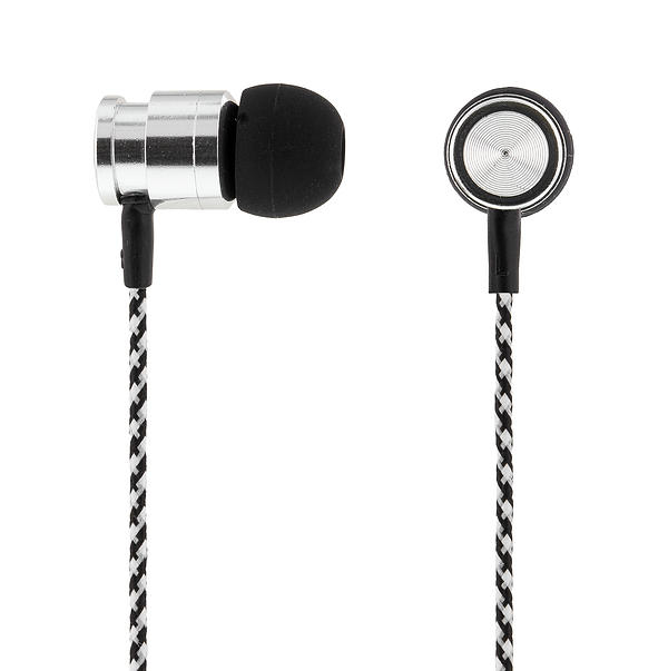 Earphones with a great sound and unique design. The cable is fabric-wrapped, giving them a unique look and comfortable feel, while making them tangle-free.