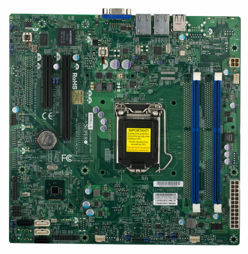 Supermicro leverages its deep expertise in server technology to bring customers the newest generation in UP server solutions with the X10 series of serverboards. These advanced technology building blocks offer the best server performance with the latest Intel® Xeon® E3-1200 v3 CPUs, up to 4 DIMMs operating at 1600MHz, USB 3.0, onboard SAS 2.0 or SATA 3.0 (6Gbps) HDDs, onboard IPMI, and advanced options such as quad Gigabit Ethernet LAN. Power efficiency is not sacrificed due to DDR3L (1.5v) support, LV CPU SKUs, digital platinum level high-efficiency power supplies, and application optimized cooling.