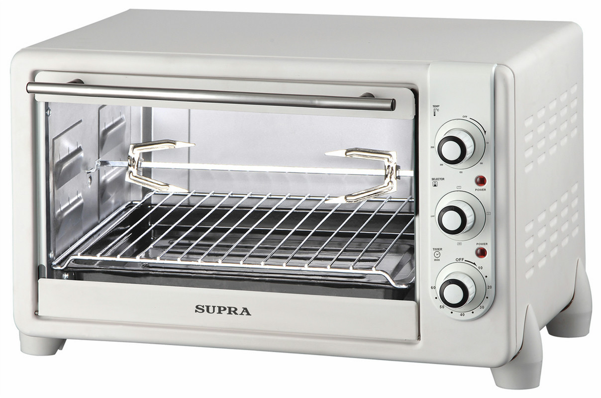 Supra MTS-340. Total oven(s) interior capacity: 34 L, Total oven power: 1600 W, Thermostat range (1st oven): 0 - 250 °C. Case design: Freestanding, Colour of product: White, Control type: Rotary. Timer type: Mechanical. Width: 560 mm, Depth: 385 mm, Height: 380 mm