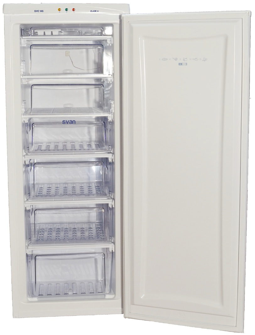 SVAN SVC 145. Case design: Freestanding, Type: Upright, Colour of product: White. Freezer net capacity: 186 L, Freezing capacity: 15 kg/24h, Storage time during power failure: 13 h. Energy efficiency class: A+, Energy usage: 0.61 kWh/24h, Annual energy consumption: 223 kWh. Width: 540 mm, Depth: 600 mm, Height: 1440 mm