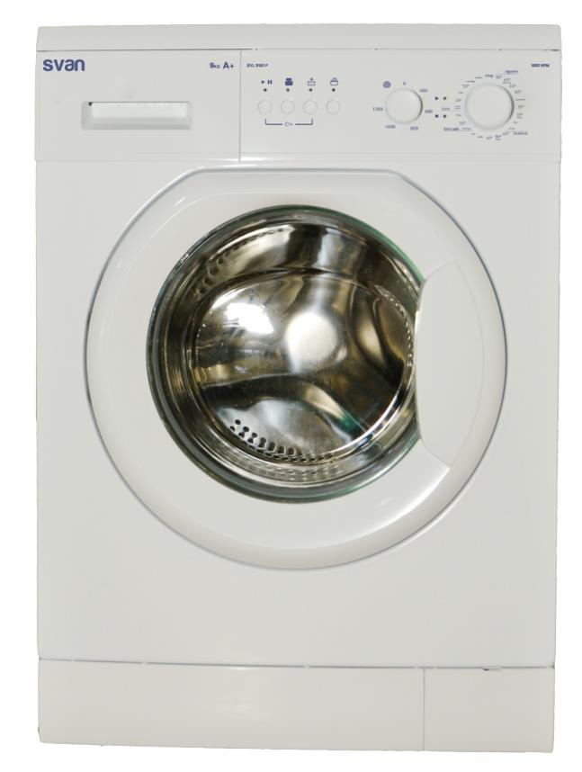 SVAN SVL 9120 P. Case design: Freestanding, Loading type: Front-load, Colour of product: White. Drum capacity: 9 kg, Maximum spin speed: 1200 RPM, Washing class: A. Energy efficiency class: A+++