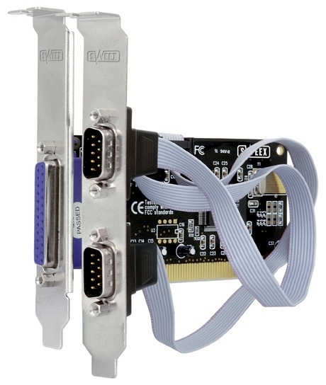 This PCI card enables you to create one additional parallel port and two serial ports on your desktop PC. This is ideal for connecting peripheral equipment which features such connections, such as a printer, scanner or modem.
