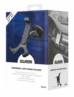 The Sweex Car Phone Holder 4.5’’-5.7’’ is designed to fit most smartphones and allows you to easily glance at your phone while driving safe. Due to its easy snap-in-click-out system and anti-slip protective holders your phone will always stay attached. The Sweex Car Phone holder’s accessibility is enhanced with 360 degree rotating path, which gives you the best viewing angle. The holder comes with a window mount and airvent mount adapter and supports smartphones from 4.5’’ up to 5.7’’.