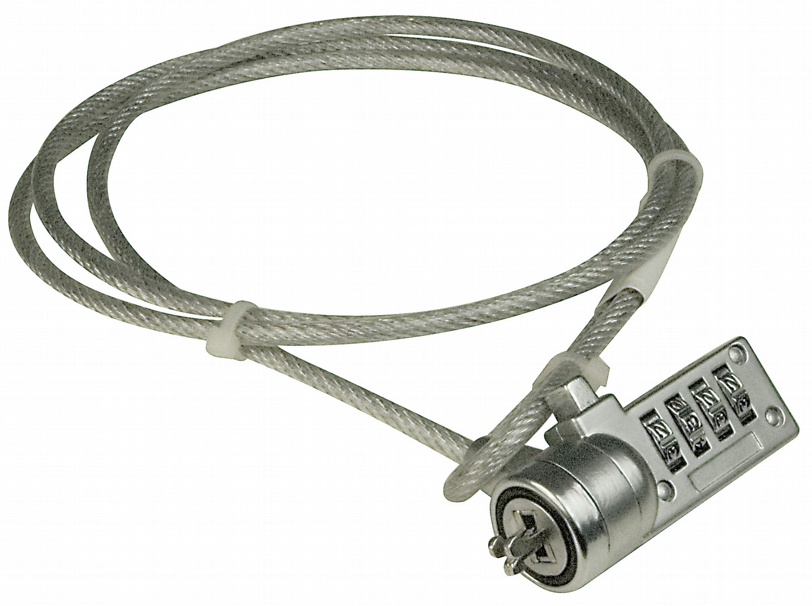 Features: - Protect your notebook, LCD-screen or desktop. - 4 figure code-lock with a cut-resistant steel cable. - Vinyl-coated steel cable for dual layer protection. - Resettable keyless lock for added security.