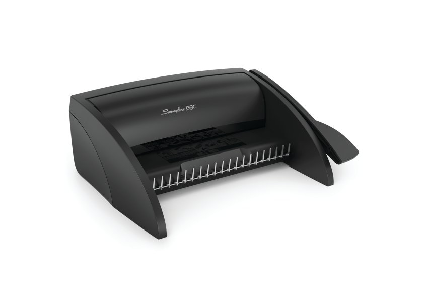 Manual binding machine and punch is perfect for the traveling professional’s presentation needs. Use with CombBind spines to create a bound document to organize and store loose papers.