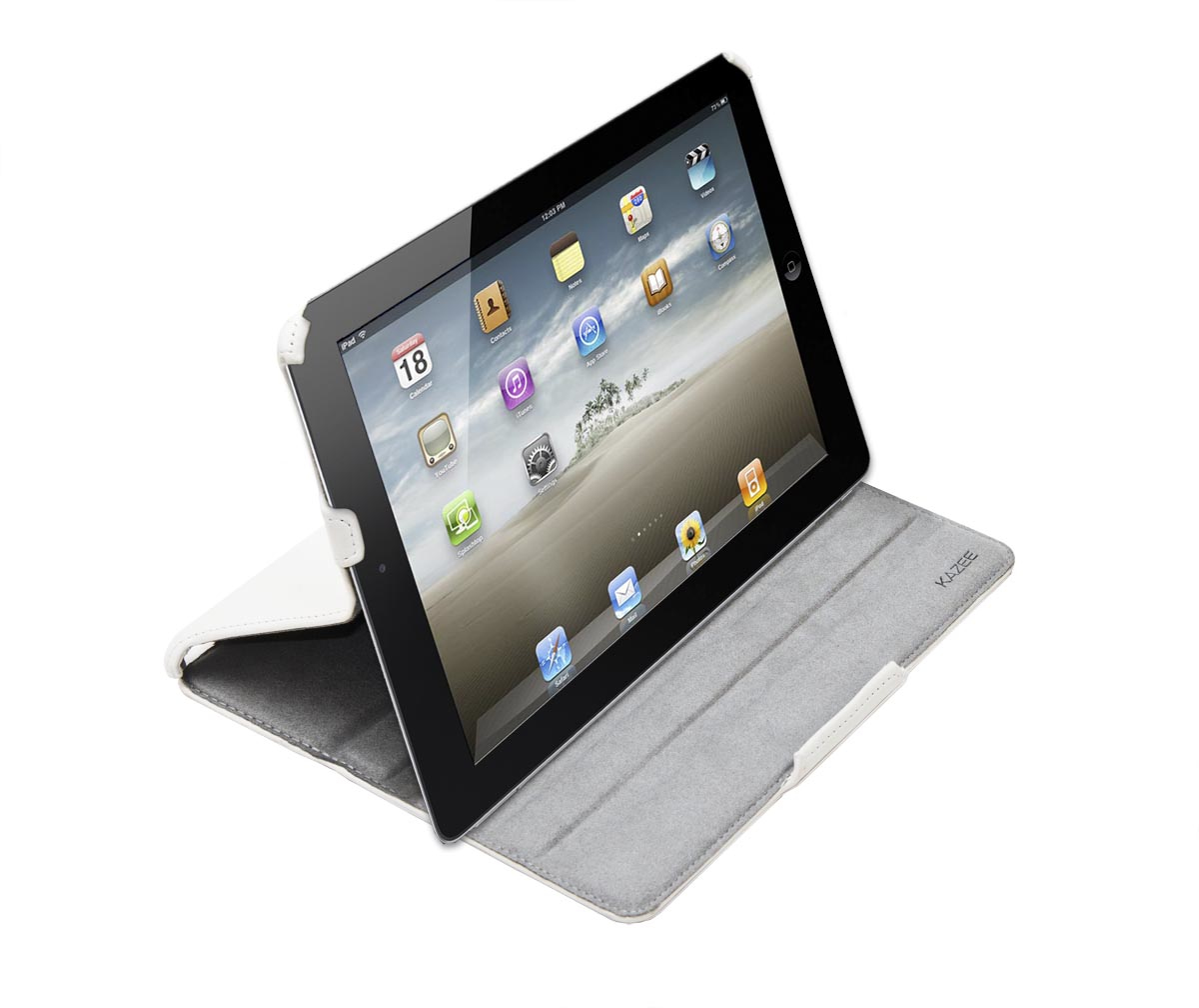 Leather like Protective Cover, 5-position Stand, Designed Specifically for iPad 2, White/Grey