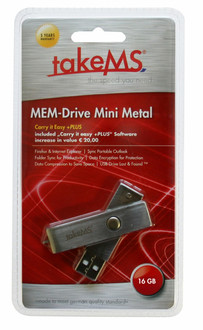 You can get the takeMS MEM-Drive Metal also in an attractive metal box, therefore it is a perfect present for any opportunity.