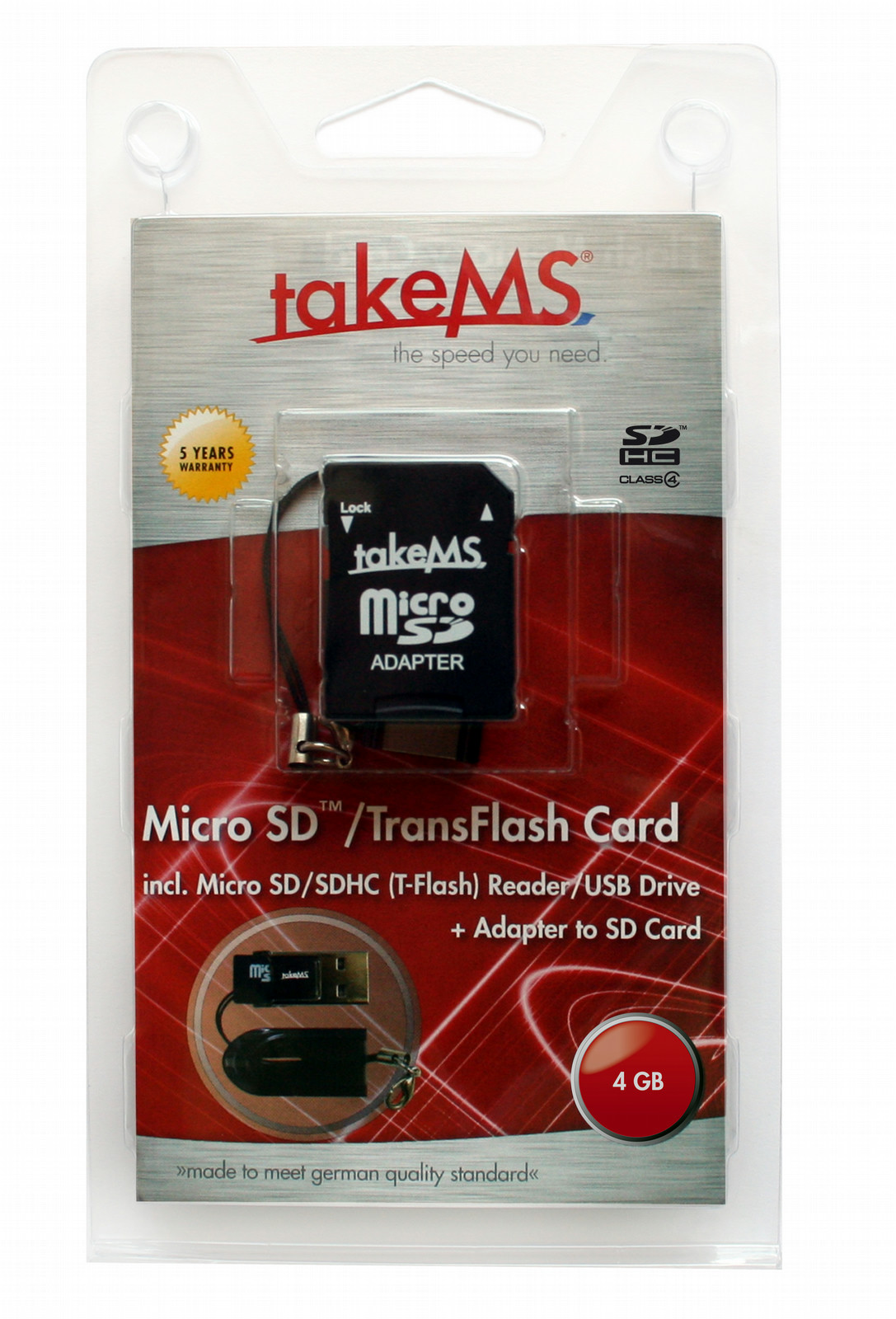 4GB MicroSDHC card class 4 + 1 adapter + 1 Mobile Drive card reader black