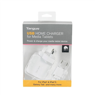 The Targus USB Home charger for media tablets allows users to power and charge their USB powered tablet directly from a wall socket using the original synch and charging cable provided with their tablet.