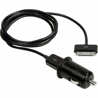 DC auto adapter to charge iPad, iPhone and iPod; includes an USB to iPad 30pin chargesync cable.