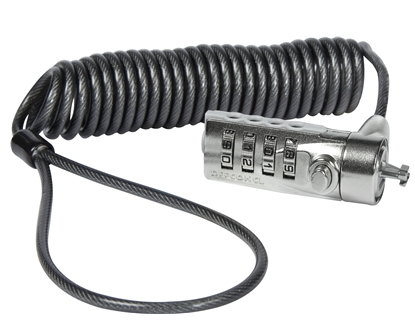 The Targus DEFCON CCL Coiled Cable Lock allows users to protect a laptop and its valuable data with this affordable security product. The Targus DEFCON CCLlock is a 6 ft cut-resistant, vinyl-coated, coiled, galvanized steel cable that loops around any secure object and easily attaches to your laptop’s lock slot. The coiled construction makes for a smaller form factor that is easy to travel with and keep out of the way while in use. The DEFCON CCL features a user-settable combination lock with up to 10,000 possible settings for added security. Ideal for use in the office, at school, dorms, hotel rooms or other highly populated areas where your laptop could be at risk.