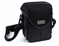 The Targus Pro Black Digital Camera Case, medium size, features a rugged T-Leatherette and nylon exterior. It has a "suspension" comfort shoulder strap, a protective overlap closure, and hi-density foam padding and plush interior lining for your digital camera. This digital camera bag also has an interior memory card pocket, a nylon belt loop with Velcro, snap closure, and a zippered front accessory pocket.