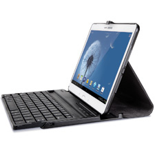 Rotating Galaxy Tab case with keyboard. Slim rotating Tab case with keyboard to cover, protect and enhance your Tab experience. A sleek, low profile keyboard offers comfortable tablet typing when you need it and can be easily removed when you don't. A patent pending keyboard guide rail system locks in the keyboard for stability. Ensuring all round Tab protection inside a durable case with soft touch interior and choice of viewing angles in landscape and portrait.<br/>Patent pending 360° rotating Galaxy Tab case with Swiss keyboard<br/>Patent pending keyboard guide rail system with removable Bluetooth keyboard<br/>Super sleek case with custom fit Galaxy Tab cradle and soft touch interior for all round protection<br/>Adjustable viewing angles in landscape and portrait<br/>Secure and discreet cord closure
