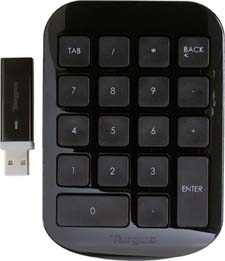 The Targus Wireless Numeric Keypad allows users to type numbers into spreadsheets and other applications quickly and easily. The full-size 19mm concave keys improve speed and accuracy by making it easier to locate and press the numbers you are looking for. The integrated ergonomic tilt provides added comfort which helps reduce wrist strain after a long work day. Wireless technology provides a cordless workspace allowing the keypad to operate up to 10 metres away from the receiver. For added convenience, the receiver stores inside of the device when not in use so it is easy to locate whether in the office or on the road. An integrated battery indicator light also lets users know when batteries are low so they are sure to have replacements when needed. An integrated ON/OFF switch lets you further save battery power when not using the keypad. The Targus Wireless Numeric Keypad provides large comfortable keys which make it easy to work on financial applications in the office or during travel.