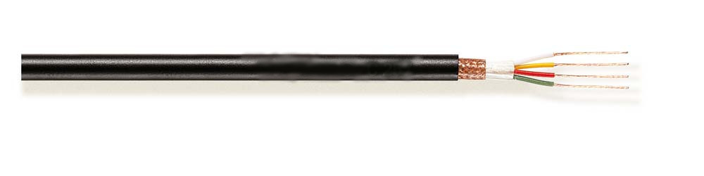 - Braided shielded balanced microphone cable with 60% shielding - red copper - Conductors in red copper - Core colours: white, yellow, red, green